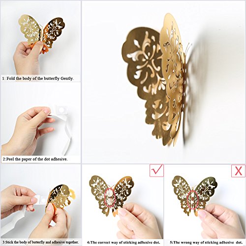 - LONGLIFE USING-Please believe that our double sided adhesive dots are very strong to prevent butterfly murals falling off from wall(please follow the instruction in the picture on the left),these 3d butterfly wall art stickers are removable,durable,pressure resistance ,easy to apply dry,clean and smooth surfaces.