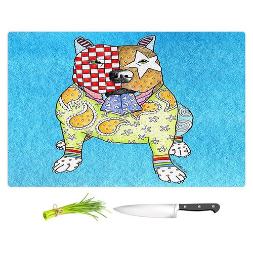 DiaNoche Designs CB-MarleyUngaroPitbullAqua2 Marley Ungaro Pitbull Dog Aqua Cutting Boards from, Large 15" x 11"
