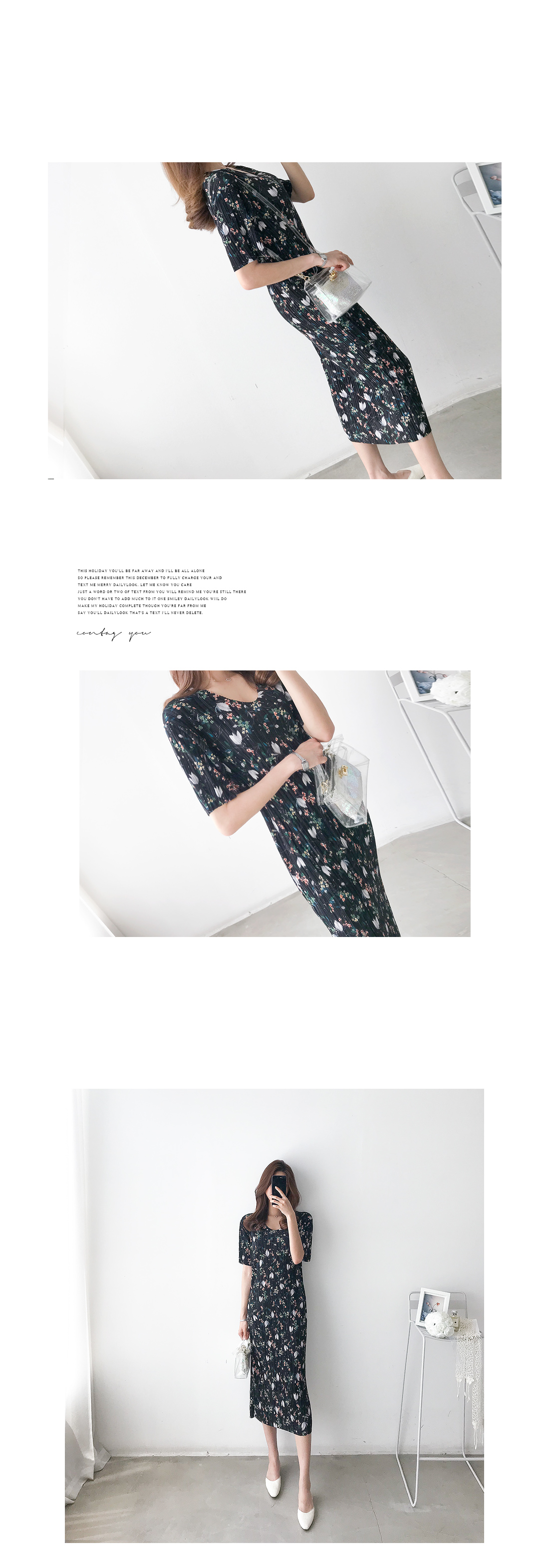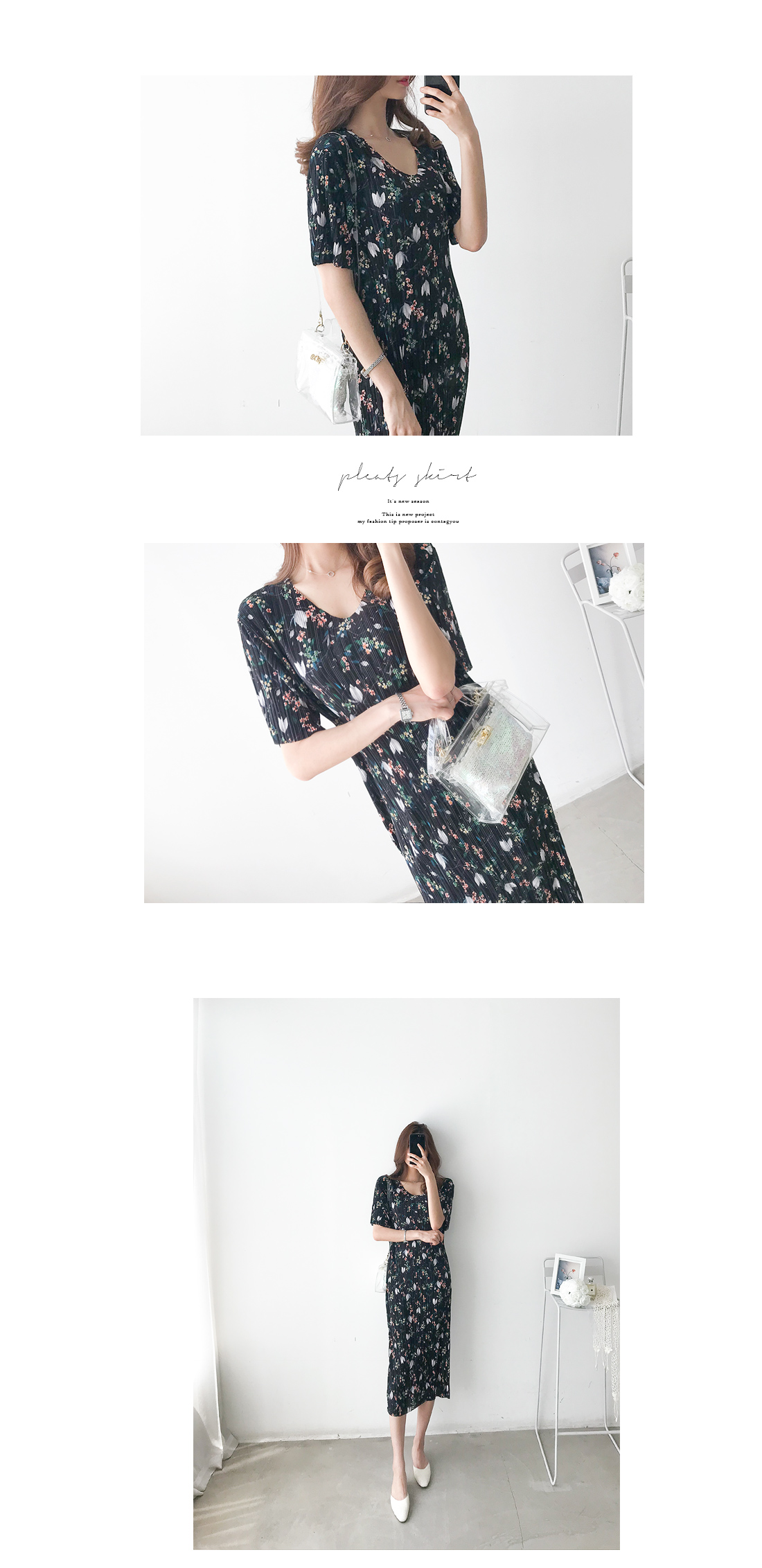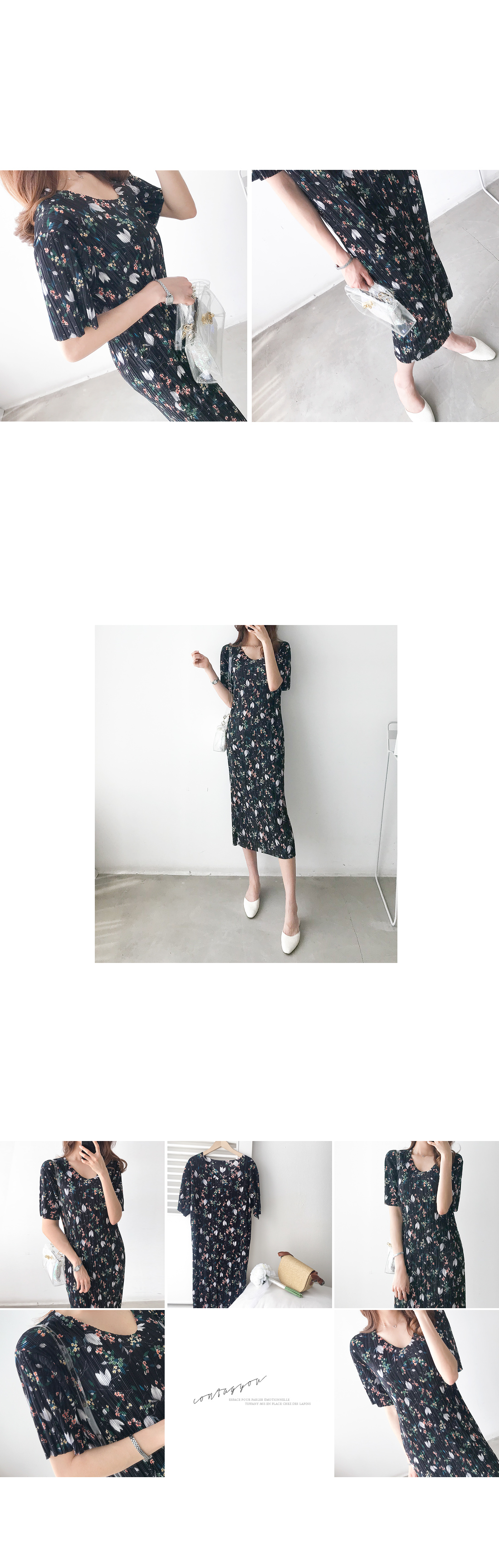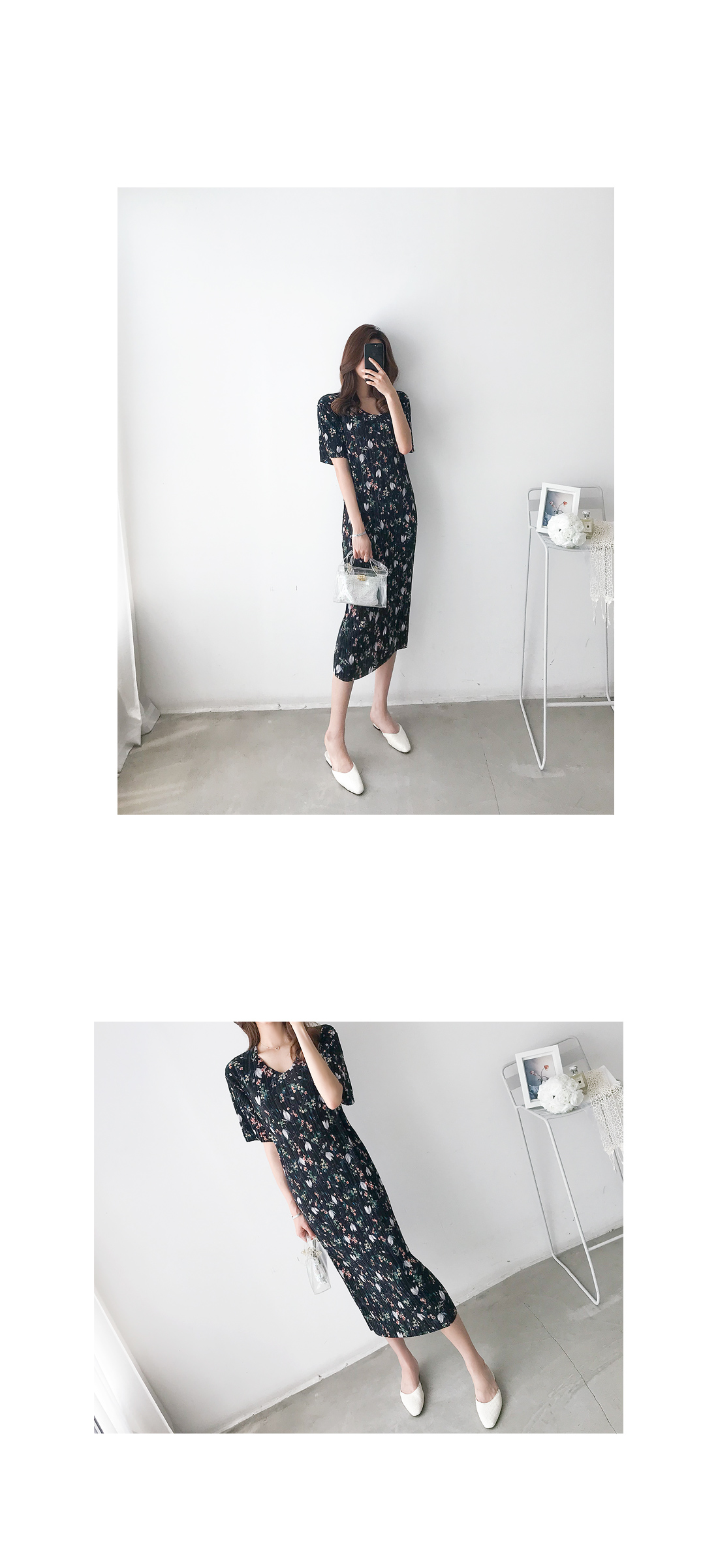 플리츠 롱 플라워 원피스#35375