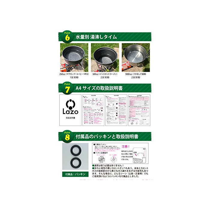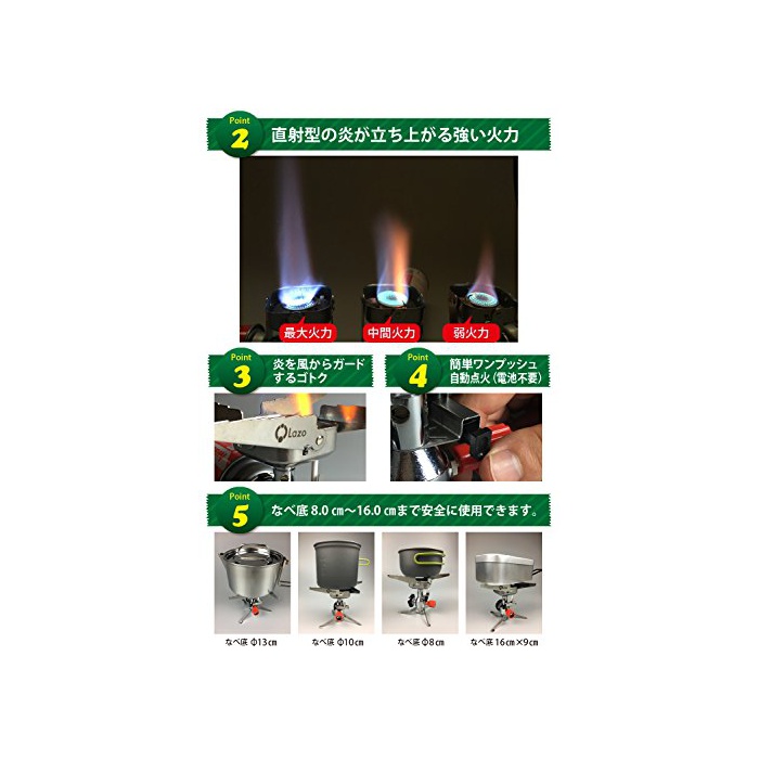 【 고열 효율 버너에 높은 가열 능력!1리터의 수를 약2 분30초에 비등 】 ●발화 방법이 자동 점화이기 때문에,가스전을 열어 원 푸쉬 하면 간단하게화가 붙습니다.전지나 매치,라이터 등의 점화 기구는 필요 없습니다. ●어디에서라도 간단하게 가스 버너를 사용하는 것 를 할 수 있습니다.화력도 매우등약까지 조정이 확실히 가능하기 때문에 눈 깜짝할 새에 뜨거운(더운) 물을 데워 커피도 간단하게 마시는 것 를 할 수 있습니다.● 수량별 주전자 타임:250cc 약1 분30초 500cc 약2 분30초 1000cc 약2 분30초(뚜껑을 하고) ●가스봄베(gasbombe)1개에 파스타를(데친다+볶음 #)2 식분 만들 수 있었습니다.