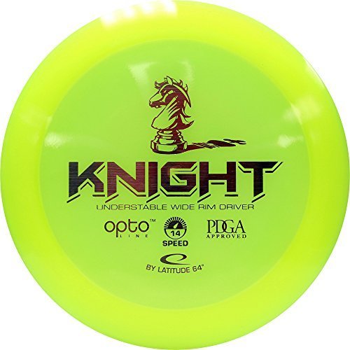 Studio : Latitude 64 Publisher : Latitude 64 Binding : Misc. Product Description When speed is of the essence, the Knight will ride with haste. This high speed driver features one of the widest rims yet on a golf disc. The Knight is extremely fast but also has great glide considering the wide rim, so this disc can ride out for long distances. For drives around 330 feet, it will be slightly understable and compared to Ballista, the Knight is just a bit more understable. Colors may vary. Please contact us for more specific weight or color requests. 0