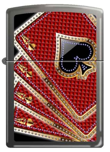 -. Title : Zippo Custom Lighter - Card Suites 4 Aces Gambling Black Ice