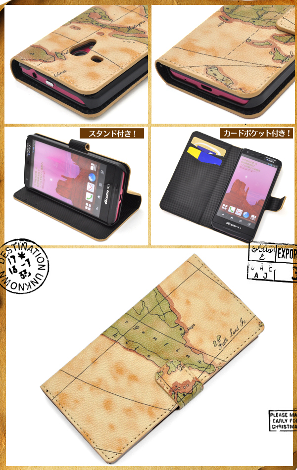 | レトロな世界地図デザインがオシャレな、AQUOS PHONE EX SH-02F用ケースポーチ! 背面を折り返すとスタンドとして使用できるので、動画視聴に最適! また、内側にはポケットが2つがあるので、カード類を入れるのに便利です 内部にはプラスチックケースを備え、本体をしっかりと固定します。 カメラはもちろん、イヤホンや各種ボタンなどをケースに入れたまま操作可能です! ※ライセンス商品ではありません。※AQUOS PHONE EX SH-02Fは附属しません。 ※デザイン、色味は画像と異なる場合がございます。 | |