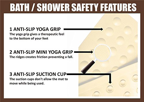 STAY SAFE WHILE YOU BATHE Suction bath mat adheres securely to the floor to ensure bathroom safety! Bath mats non slip raised texture helps you keep a stable footing, even when your feet are wet