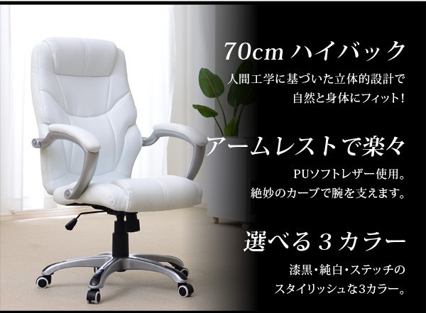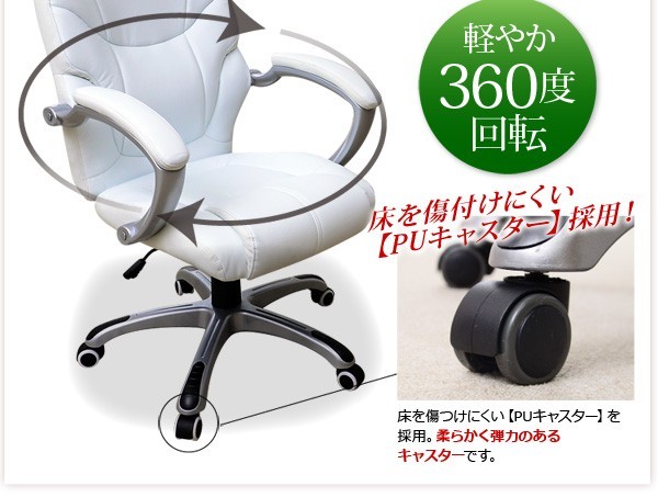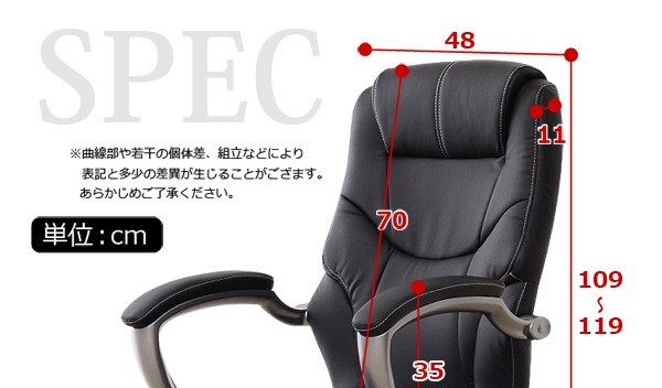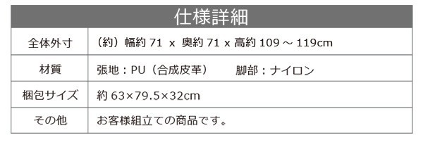 【商品について】■サイズ本体:幅71×奥行71×高さ109~119cm座面下高:約35~43cm座面上高:約40~48cm(背もたれに一番近い部分)肘面高:約68~76cm■材質:PU(合成皮革)/脚部(ナイロン)■その他・お客様組立商品です。