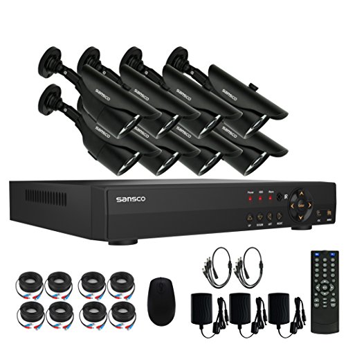 SANSCO CCTV Security Camera System with 8-Channel 1080N DVR and 8 Bullet Cameras (All HD 720p 1MP) Smart Video Surveillance Kit, NO HDD Included