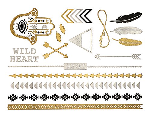 -. Title : Premium Metallic Tattoos - 75+ Shimmer Designs in Gold, Silver, Black & Turquoise - Temporary Fake Jewelry Tattoos - Bracelets, Feathers, Wrist & Arm Bands, & More By Terra Tattoos™ (Delila Collection)
