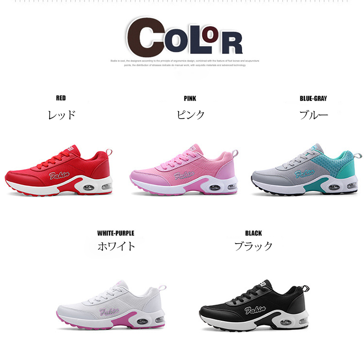 スポーツシューズ レディース スニーカー カジュアル エアークッション 着地衝撃を吸収 ランニングシューズ トレーニングシューズ