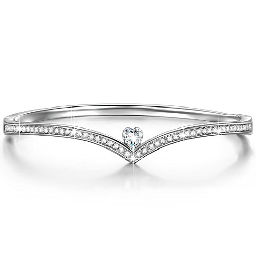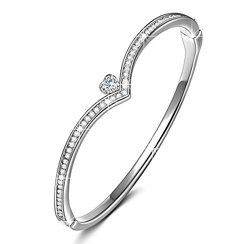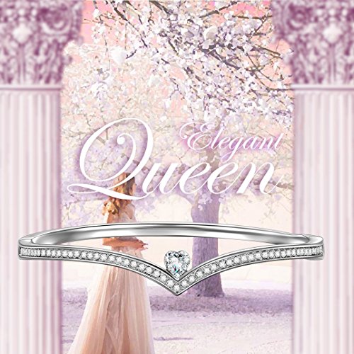 -. Title : LadyColour "Queen" Heart Design Crown Bangle Bracelet Crystals From Swarovski Push-Button Closure 7"