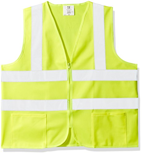 TR Industrial Neon Yellow Front Zipper 2-Pocket Knitted Safety Vest, Size Medium