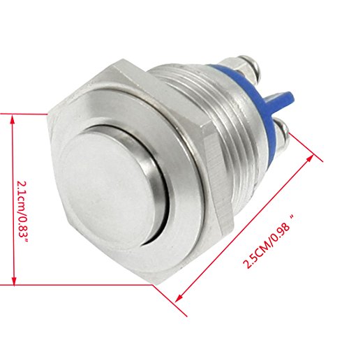 Yueton DC 36V 2A 16mm High Round Cap Waterproof Metal Momentary Push Button Switch High Flush Reactable Screw Terminals