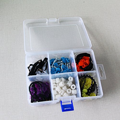 -. Feature : 1.Designed with 6 rectangle compartments and the compartment can be adjusted by pulling the plastic sheet. / 2.It can be used to store earrings, bead, finger ring or other small jewelry, also is used for storing fishing hook, fish lure bait or other small tool kit. / 3.This case features 5 removable dividers,It allows user to adjust the compartment size to fit individual needs. / 4. Compact design, portable and comfortable to use / 5.It's very handy for keeping your small parts and bobs for use in DIY or even fishing!