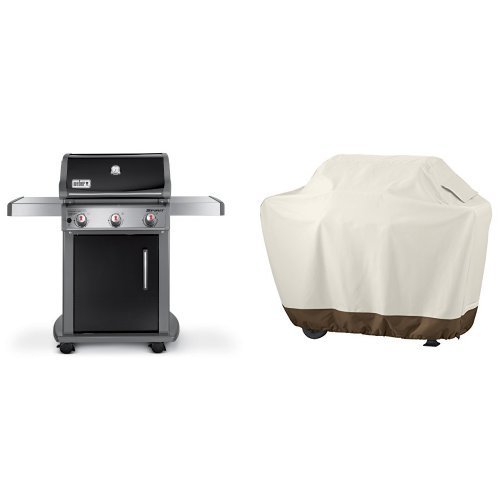 Weber 46510001 Spirit E310 Liquid Propane Gas Grill, Black & AmazonBasics Grill Cover - Medium