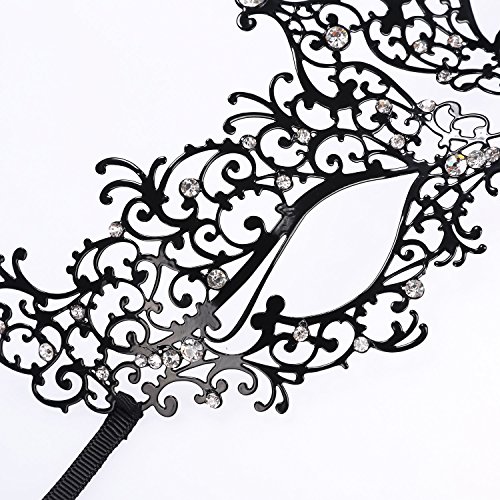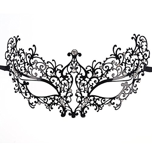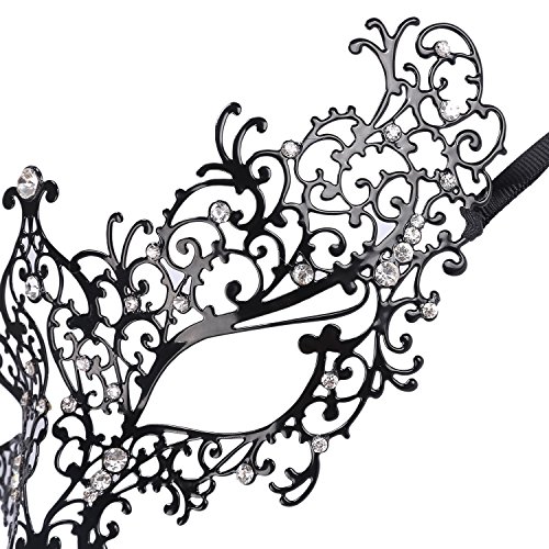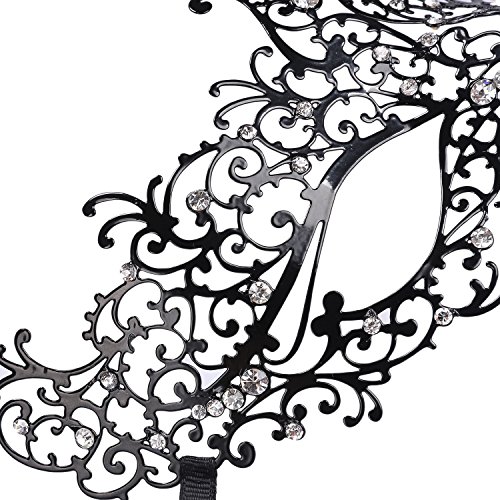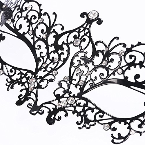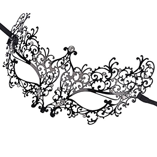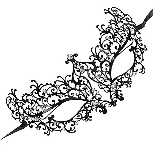 NEWSTYLE Luxury Laser Cut Metal Venetian Filigree Mask with Rhinestones, Pretty Masquerade Halloween Party Mask