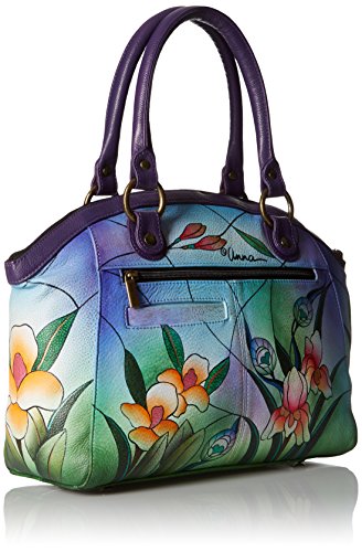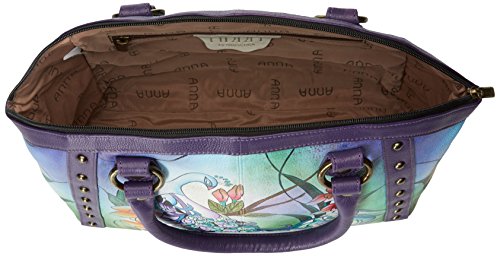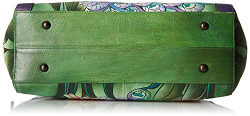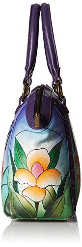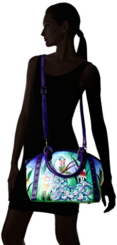 Anuschka Handpainted Leather Large Studded Satchel Midnight Peacock