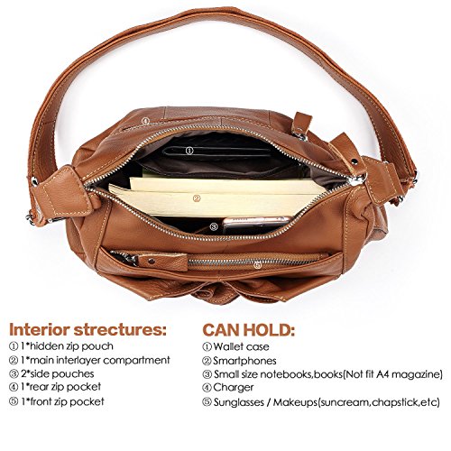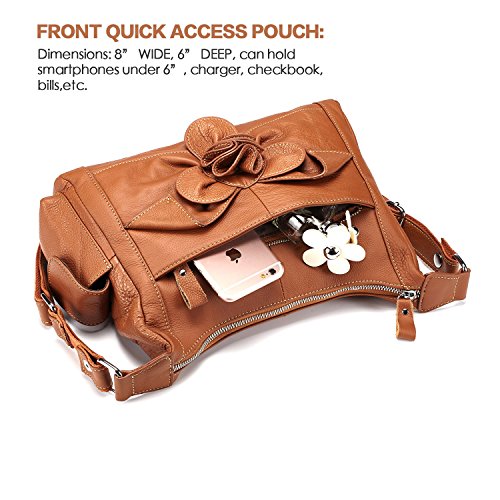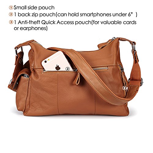 ✔ [Multi Pocket Bag]: 1 front quick access pouch, 1 rear pouch, 2 side pouches, 1 main interlayer compartment(1 hidden zip pouch, 2 side pouches), can hold smartphones, ipad mini, charger, makeup necessities(such as chapstick, perfume, mascara), wallet case, etc