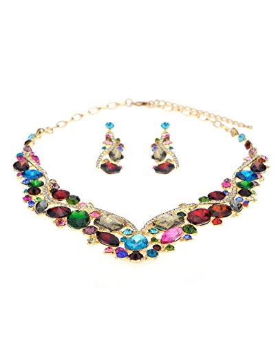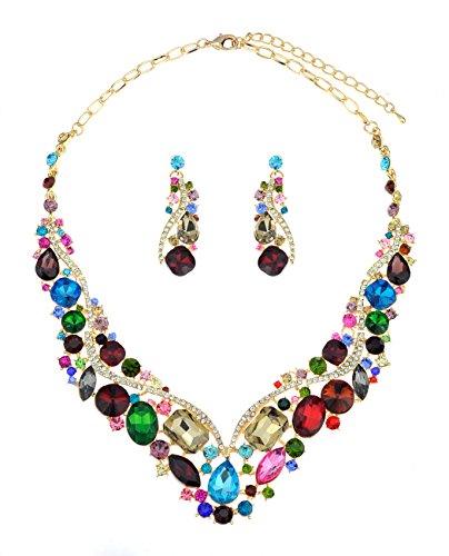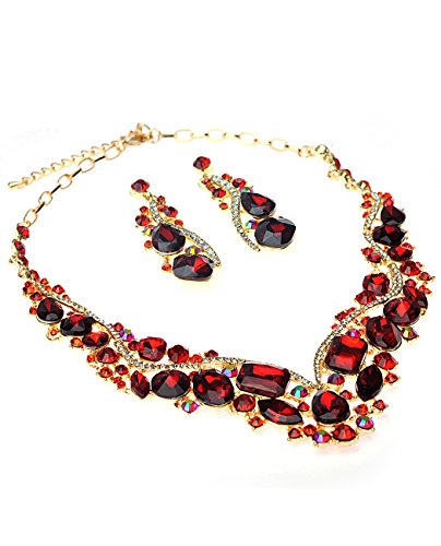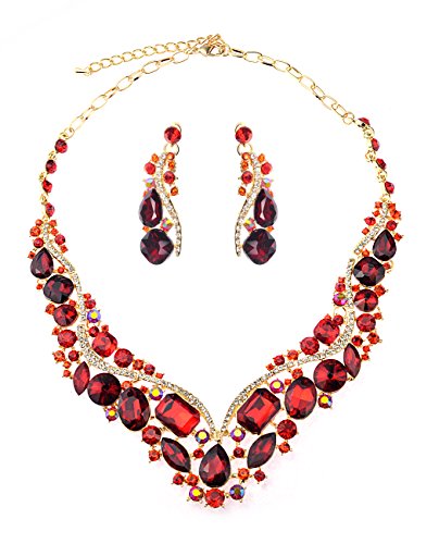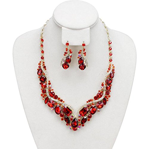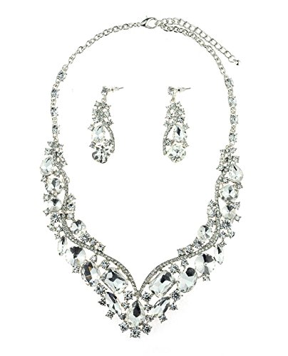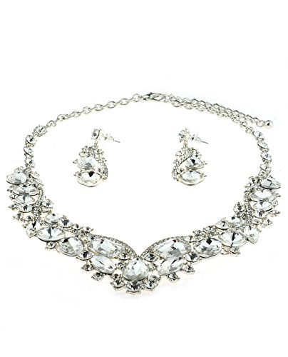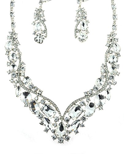 -. Title : Rhinestone Charm Necklace and Earrings Jewelry Set