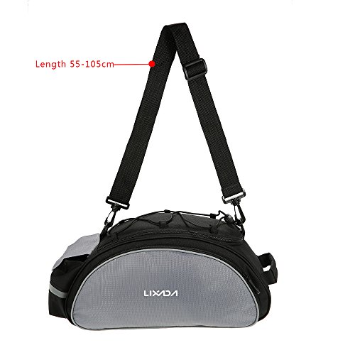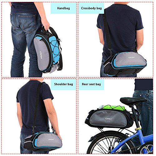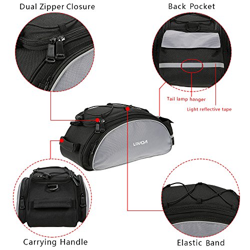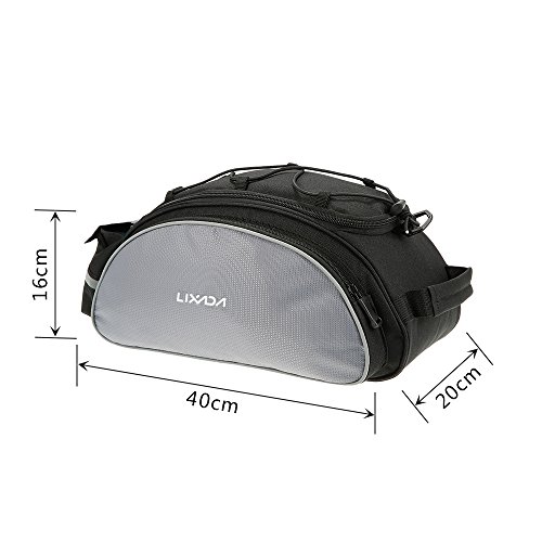 Multifunctional bicycle rear seat bag with carrying handle and adjustable shoulder strap, can be used as handbag and shoulder bag. 13L storage capacity provides large space for your items, helpful riding essentials for any cyclist.