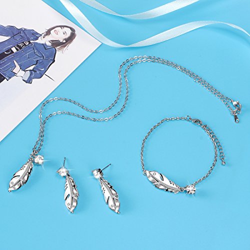 -. Title : Btime "Autumn Leaves" Feather Shaped Earrings Necklace Bracelet Jewelry Set