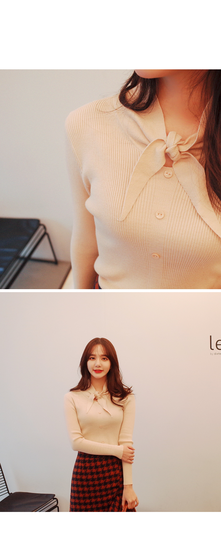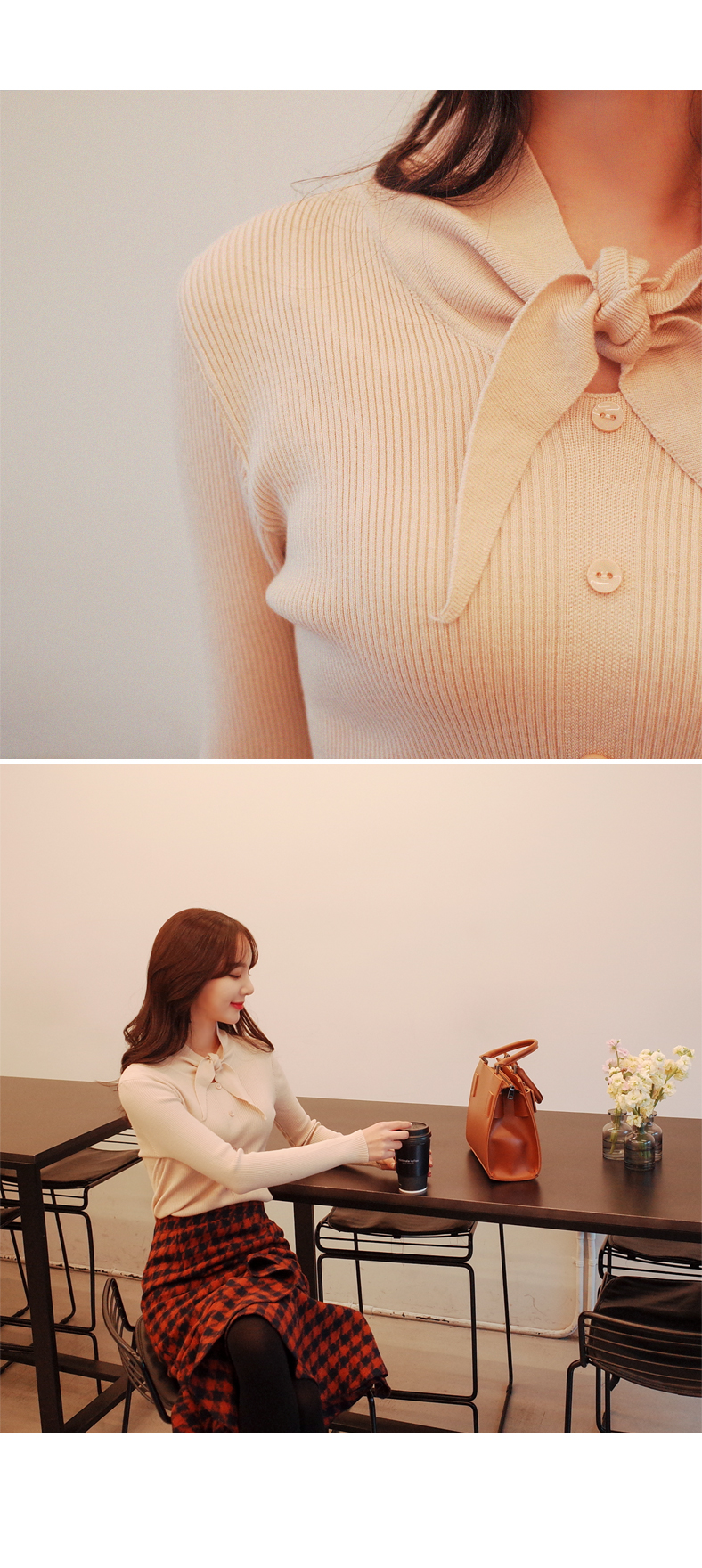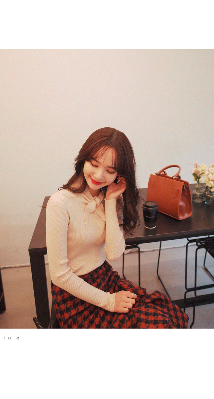 리본 포인트로 사랑스러운 슬림핏 니트입니다