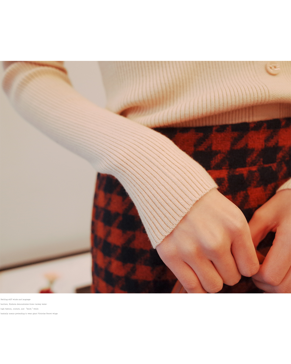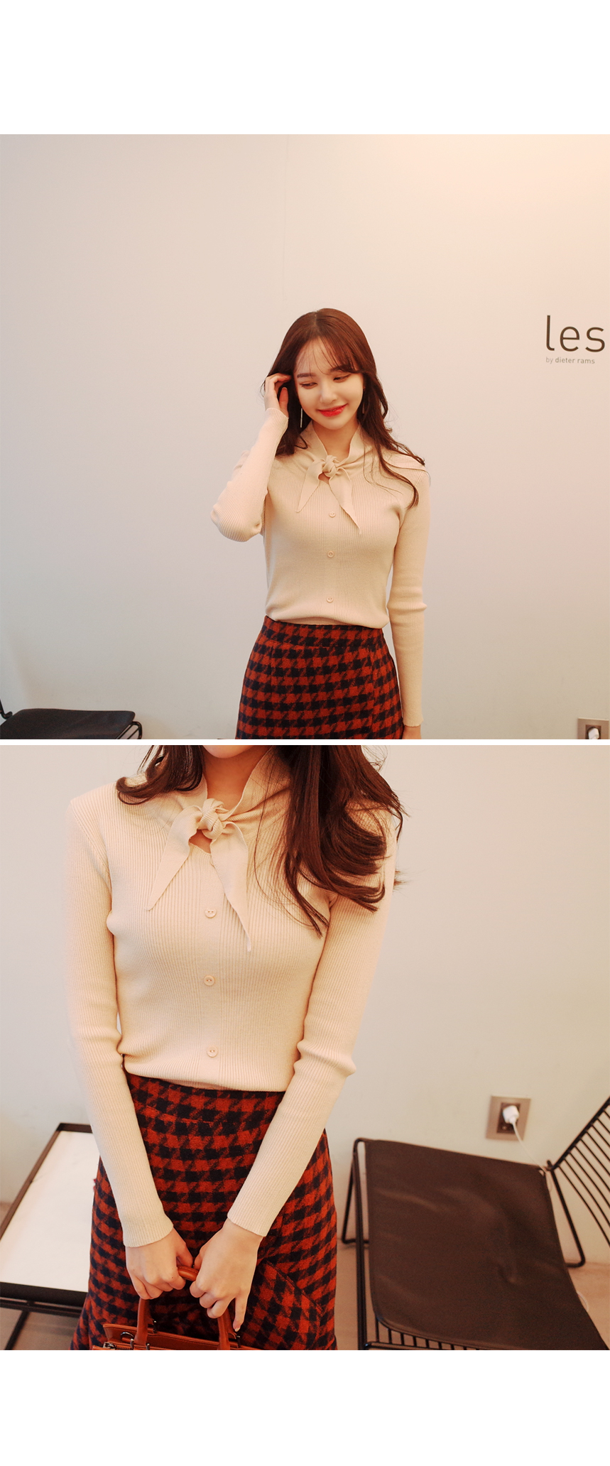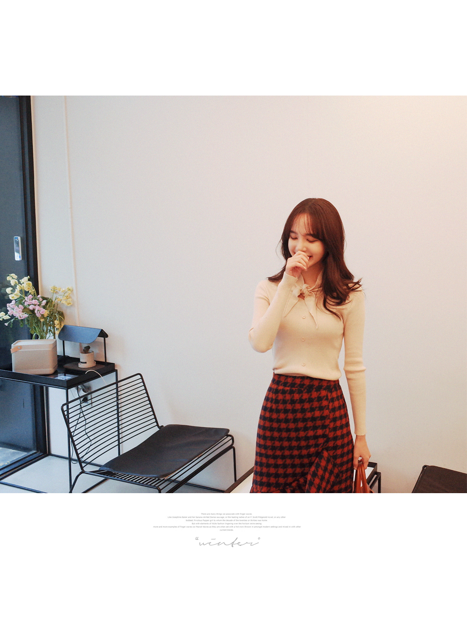 리본 포인트로 사랑스러운 슬림핏 니트입니다