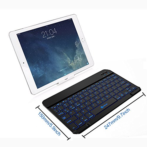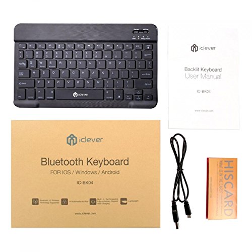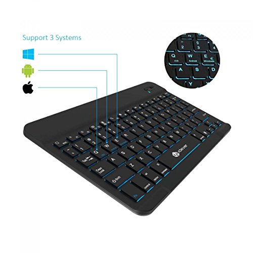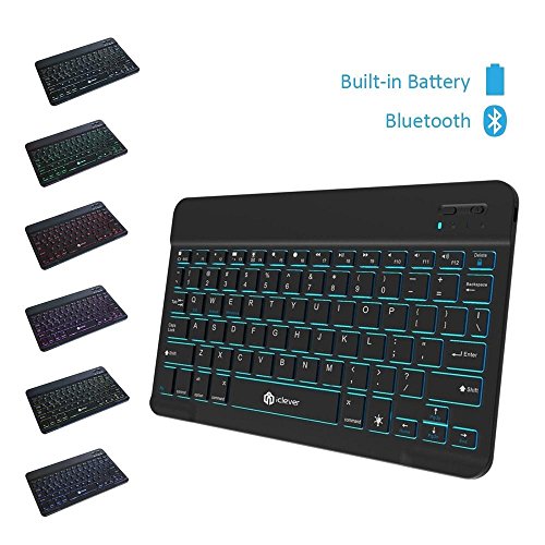 iClever Quiet 7 Color Backlit Rechargeable Portable Bluetooth Keyboard for PCs, Tablets, Smartphones