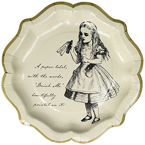 Talking Tables Truly Alice 9 Alice in Wonderland Mad Hatter Party Paper Plates with Gold Trim for a Tea Party or Birthday, Cream/Gold (24 Pack)