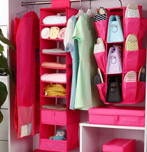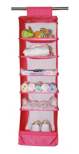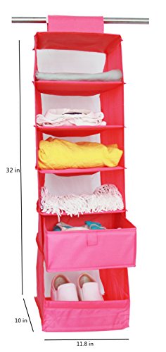 6 Shelves Hanging Closet Organizer- for Clothes Storage and Accessories, (Black)11.8 x 10 x 32inch (ROSE RED)