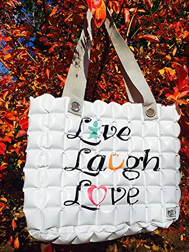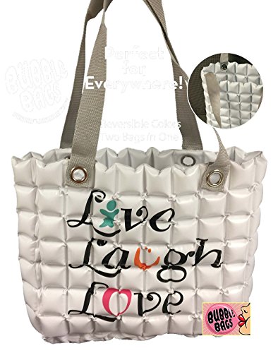 GFF Grass Flip Flops Bubble Bags Fun Inflatable Tote, Live Laugh Love, White