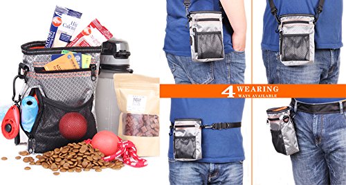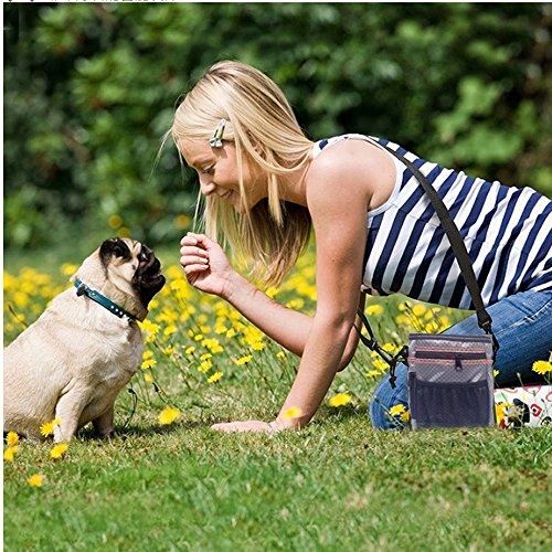 -. Feature : ULTIMATE DOG BAG - Now your pet has their very own bag with room for everything! Space for toys and treats, a built in poop bags dispenser. / TWO WAYS OF WEARING: There are two straps come with the bag, a shoulder strap and a waist shoulder. There are eaysily connected to the bag. / MORE THAN A BAG- There is also a collapsible travel dog bowl that comes with the bag. Yow will get everything in one place for whether having travel with your pet, training a new puppy,or taking your pet for a walk. / DEPENDABLE QUALITY - This bad and accessories are made of the highest quality materials. Waterproof nylon fabric, reinforced zippers and adjustable straps. The inner liner can be pulled out for easy cleaning. Collapsible dog bowl is 13 x 5cm deep, made of BPA-free silicone for your pet's health. / GUARANTEE - If you use our Sweetie Doggie Treat Pouch and do not love it, simply return for a full refund. Add one to your cart today!