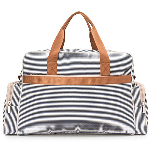 O'beanie guarantees that you will look on-trend and stylish at all times. With a neutral nautical Navy and Cream stripe and contrasting Tan trim this is the perfect diaper bag to compliment every style. This fashionable tote bag in a unisex design is suitable for mom or dad. The O’beanie tote has a long detachable Tan shoulder strap and matching detachable stroller straps ensure this bag is perfect for hands free use. The included changing mat is color co-ordinated in nautical style and wipe clean with Velcro fastening.