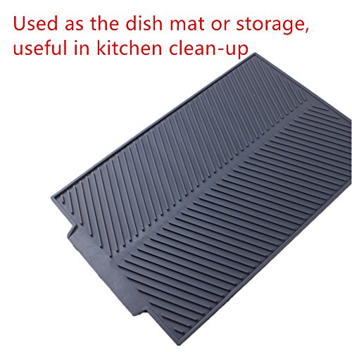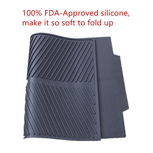 Self Draining Silicone Drying Mat. 17 x 13 inches 0.71 lb | Dish and Glassware Sloped Board Silicone Tray in Grey. Anti-Bacterial, Dish Washer Safe. Heat Resistant Trivet (Large Mat-grey)