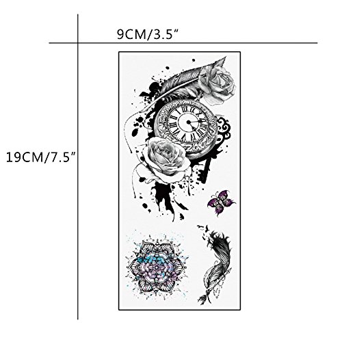 TAFLY Black Sexy Clock Flower Temporary Tattoos Waterproof Fake Body Art Tattoos Sticker for Women 5 Sheets