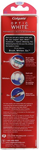 Take whitening to a whole new level with the new Colgate Optic White Toothbrush + Built In Whitening Pen. The all-in-one brushing and whitening solution goes beyond surface stains to deeply whiten. So you can get whiter teeth in just 2 days*. Satisfaction guaranteed. Now whitening is as simple as Brush. Whiten. Go.