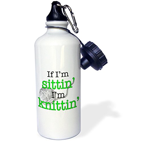 3dRose wb_193226_1 "If Im sittin Im knittin, Lime Green" Sports Water Bottle, 21 oz, White