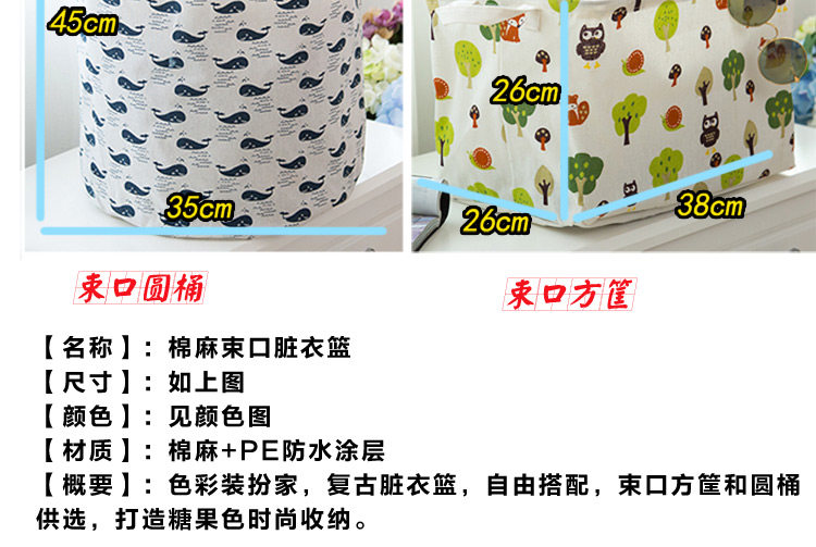 High-dimensional drums, diameter 35 * high 45cm, can be stored to be laundry, thick quilts, thick cotton clothing, baby toys, etc., the internal waterproof PE coating treatment, can be Waterproof moisture, mouth support, no other internal support. Proposed pro who received the goods into the goods after a few days on the very flat. Hand wash, do not machine wash do not twist rejection, ventilation dry,
