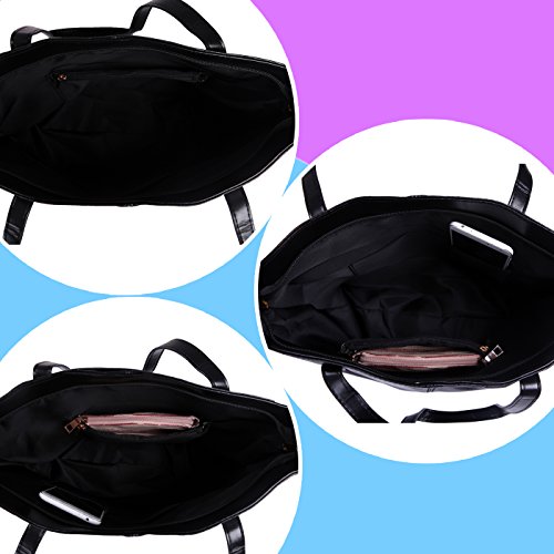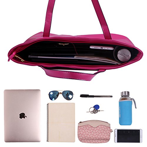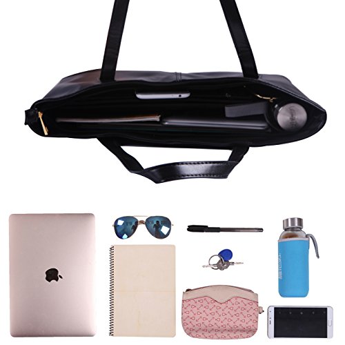-. Brand : HDE -. Department : womens -. Feature : Smooth synthetic leather construction with accented tailor stitching / Lightweight, stylish carryall with roomy storage for necessities and essentials / Large handbag features dual top handles with 8" drop, can be carried on shoulder or in hand / Open top with zipper closure | Interior: Soft fabric lining with zipper pocket and media slip pockets / Dimensions: Height: 11", Width 15", Base: 5" -. PackageQuantity : 1 -. ProductGroup : Shoes -. ProductTypeName : HANDBAG -. Title : HDE Women's Handbag Leather Carryall Tote