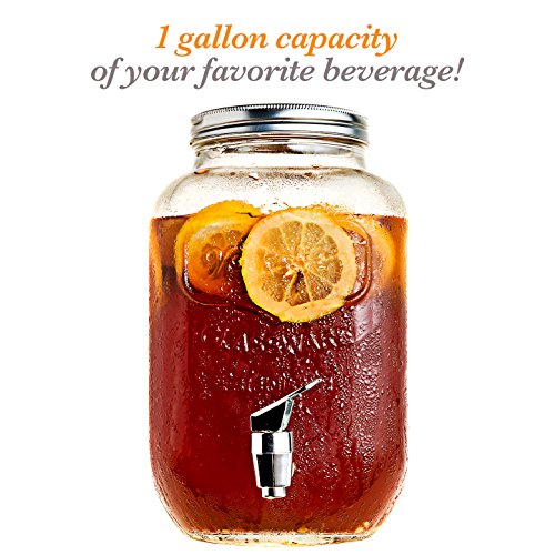 The Mason Jar Glass Drink Dispenser That Will Make An Event Out Every Room It's In Hosting an afternoon party or a bridal shower? With Home Accents' 1 gallon (3,8l) Jar Glass Beverage Dispenser, you serve up a batch of fresh lemonade like no one. Friends and guests can easily help themselves to juice, water, tea, sangria, or wine whenever they want to. It holds one gallon (3,8l) of any beverage, hot or cold, which can be easily dispensed from the spigot by pressing down the lever. Easily opened and closed from the top with a leak proof twist lid and a sturdy glass container. Besides, to make the party complete, the jar is adorned with a nice chic design. 0 |