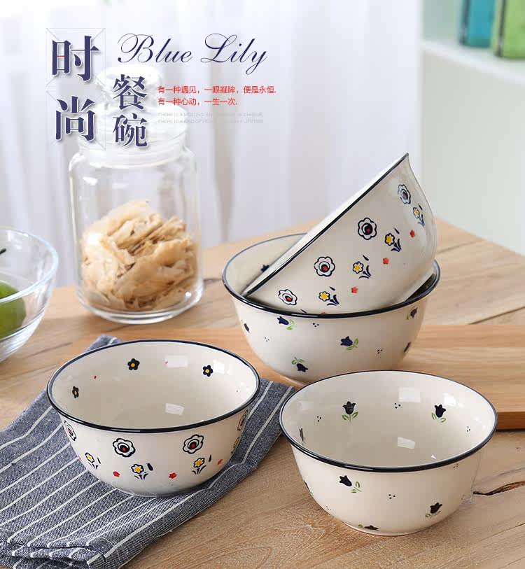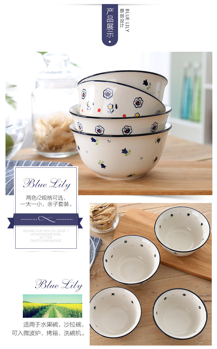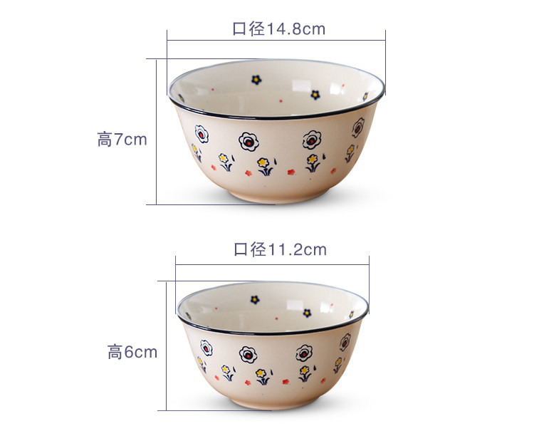 亲子装超可爱小碗 田园小花彩绘陶瓷小碗 家用4.5寸饭碗5.8寸面碗