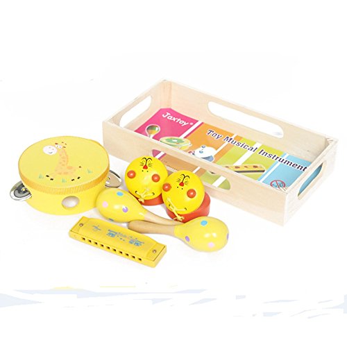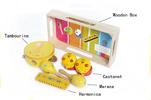 -. Feature : 1.Ideal for educational activities. Benefits playing an instrument helps develop children's creative thinking, motor skills, improves their hand and eye coordination, teaches them patience and sharing, great for playing with multiple kids at once. / 2.Recommended for ages 3 and above. This set is the perfect way to introduce music and instruments to your child or just a way to relax and have some fun. Easy for little hands, good sound. / 3.Diverse assortment of percussion instruments. Includes 3 different percussion instruments that produce a wide variety of sounds, for playing individually or in a group. / 4.For long term use . All the instruments in our musical set for toddlers have smooth, rounded corners making them completely safe for your children. Smooth surface and nice polish, won't hurt kids's skin. You can therefore let them play unattended to without worrying that they will get injured. / 5.Package Contains: 1 x Tambourine( 3.94 Inches) + 1 x Harmonica (10 Holes) +2 x Sand hammer (4.72 Inches) + 2 x Castanets