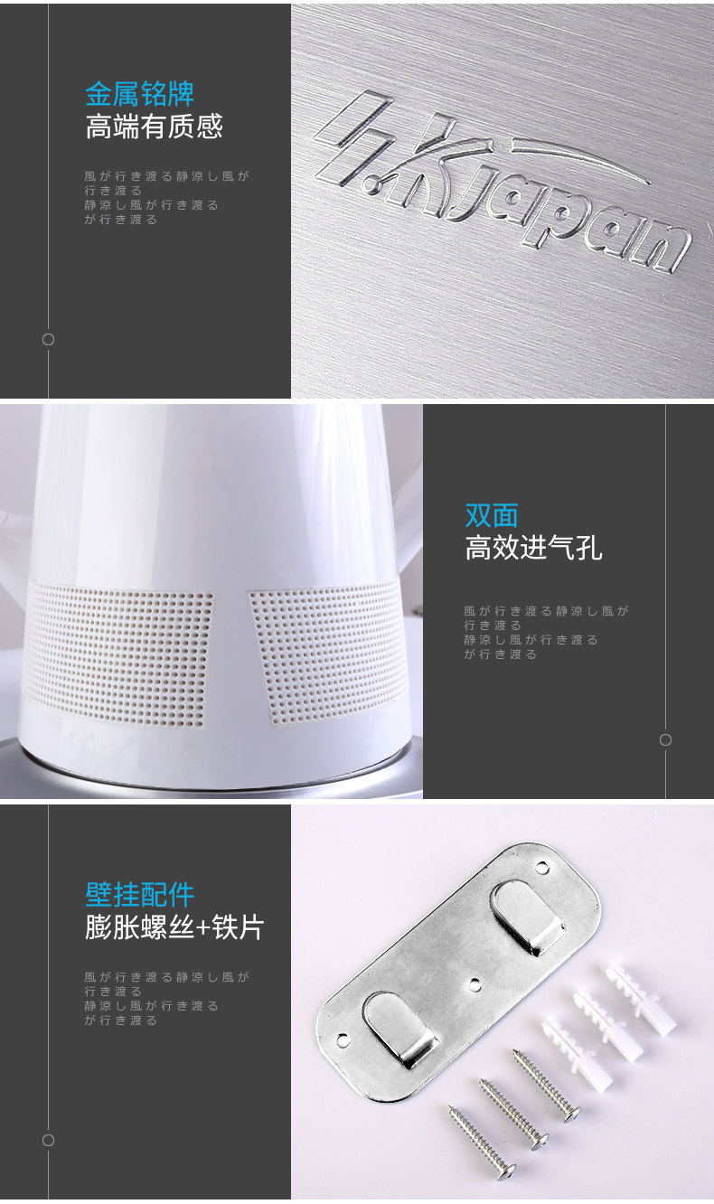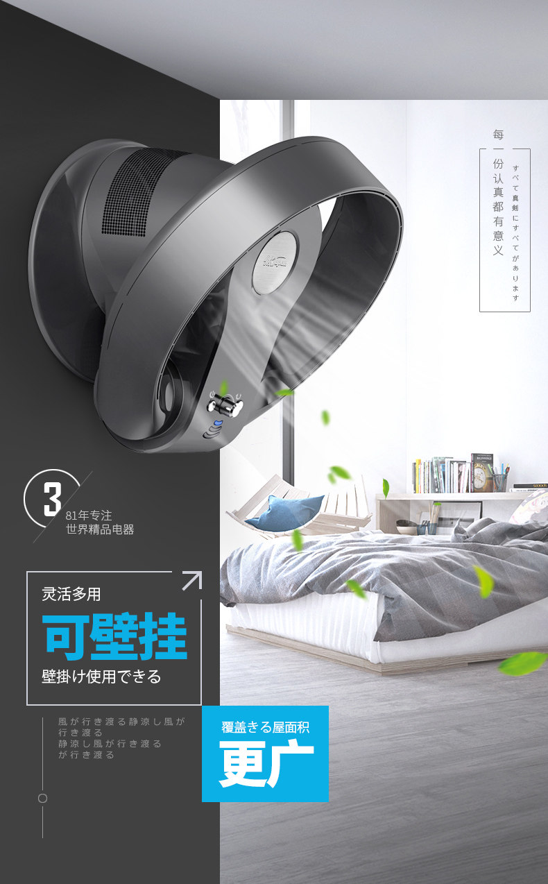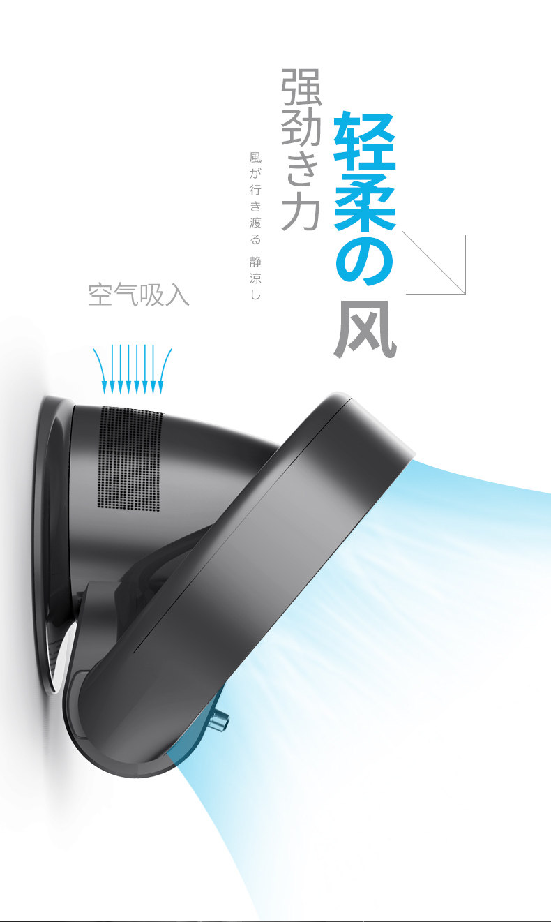 卓上、壁掛け、サーキュレーターとしてして使える3WAYタイプ。