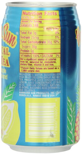-. Binding : Grocery -. Brand : Seasia -. EAN : 0079800100050 -. Feature : 24 cans of Hawaiian Sun Tropical drinks. / A plantation iced tea characterized by the natural sweetness of pineapple. / Hawaiian Sun's popular 11.5 oz Nectars and Drinks come in different blends of tropical flavors. / Hawaiian Sun nectars and drinks are packaged in aluminum cans designed with colorful fruits, island scenery and flora. / Made in Hawaii since 1952 -. Label : Seasia -. Manufacturer : Seasia -. NumberOfItems : 24 -. PackageQuantity : 24 -. ProductGroup : Grocery -. ProductTypeName : GROCERY -. Publisher : Seasia -. Size : 11.5 Ounces -. Studio : Seasia -. Title : Hawaiian Sun Iced Tea, Tropical, 11.5-Ounce (Pack of 24) -. UPC : 079800100050