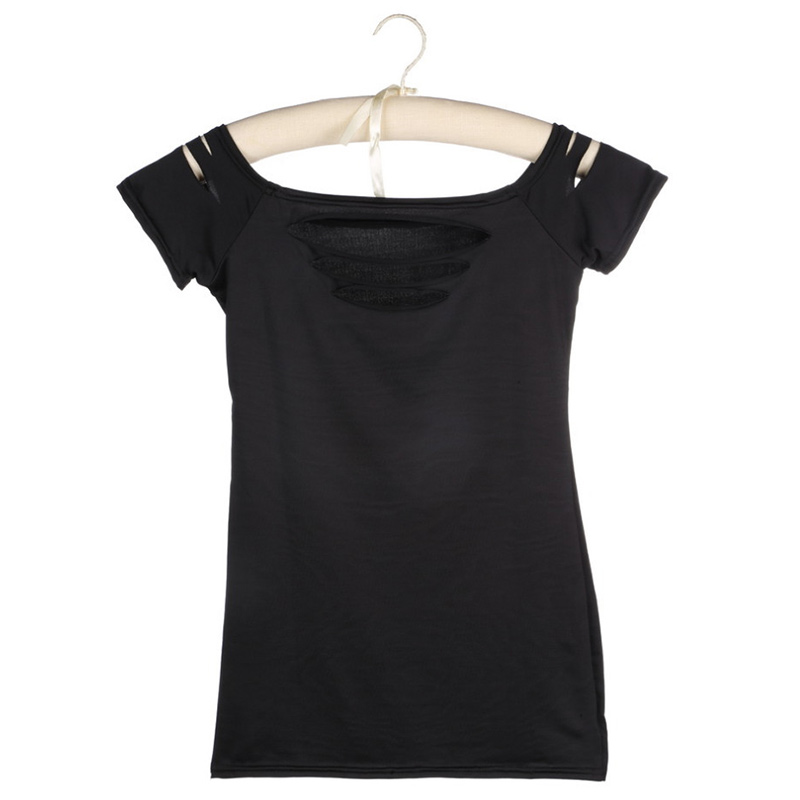 High Quality Fashion Ladies Womans Sexy Ripped Slashed Black Tight T Shirt Top Clubwear Cut out Tee Club Goth Punk Rave