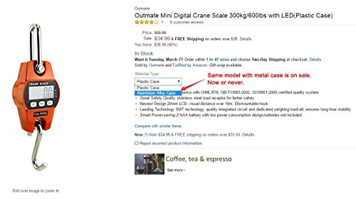 Outmate Mini Digital Crane Scale 300kg/600lbs with LED(Plastic Case)