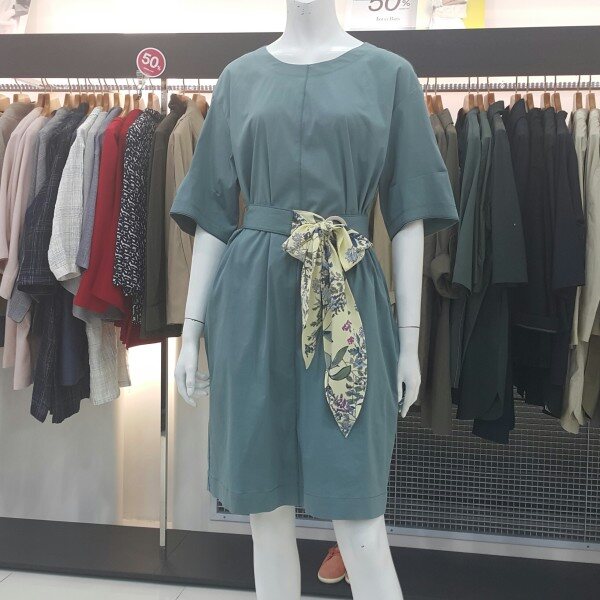 신축성이 좋은 면혼방 루즈핏 원피스입니다스카프가 달린 벨트로 여성스러우며세련된 디자인입니다꾸미지 않은듯 꾸민 세련된스타일링을 연출해 보세요~~~
