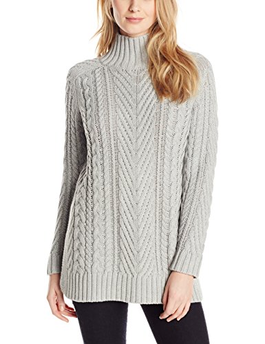 Long sleeve. Turtleneck. Tunic length. Mixed cable stitch