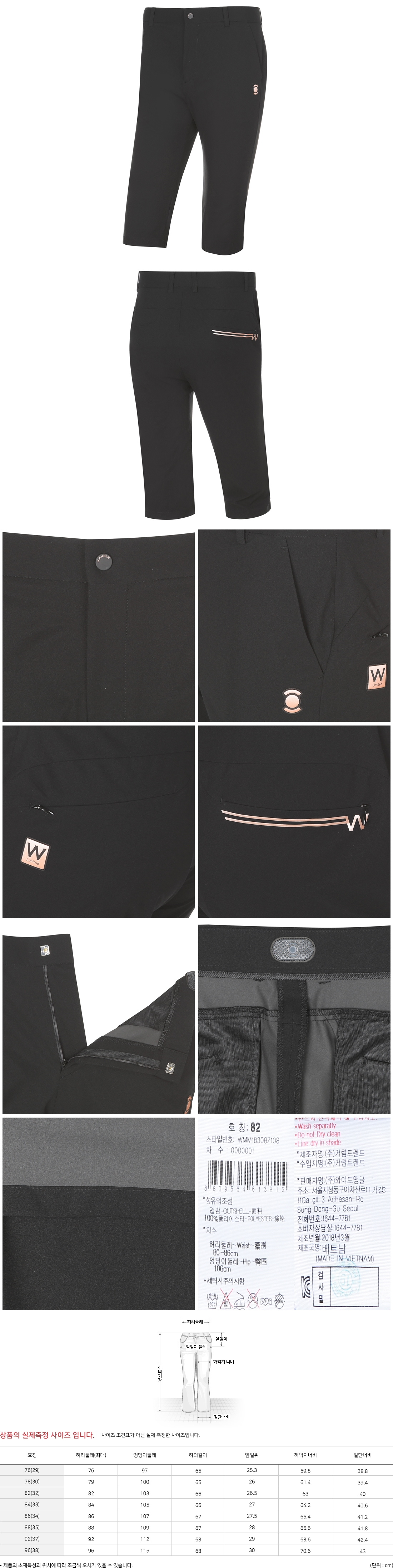 ㆍ필드 위 최상의 플레이를 써포트하는 W.LIMITED 시리즈의 7부 팬츠ㆍ스판사가 없으면서 4WAY STRETCH 가 뛰어나며 가벼운 소재 사용ㆍ스트레치 오비 (매직밴드)를 사용하여 편안함 극대화ㆍ새롭게 선 보이는 New FIT 의 W.리미티드 7부팬츠