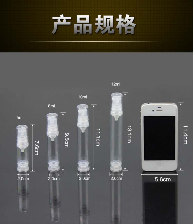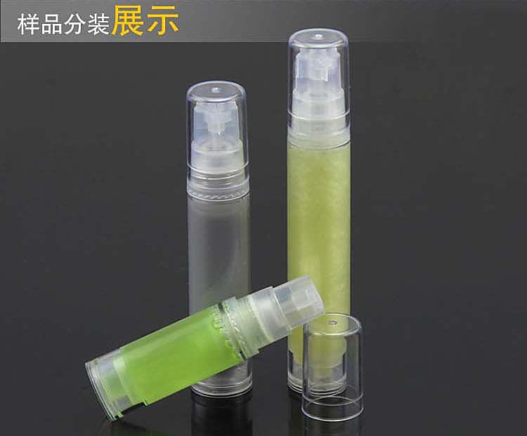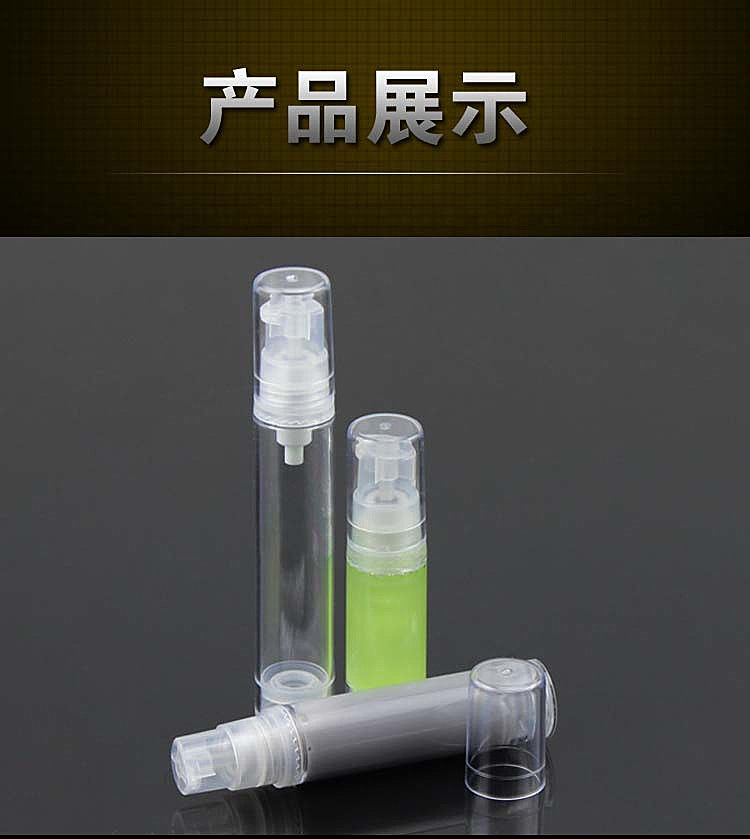 真空瓶没有吸管,请大家不要感觉奇怪.真空瓶不需要管子哦,底部有托盘的,产品装的时候需要装的比较满,东西按点出来,底部的托盘就上升点.这样的话,东西就会全部用的一点不剩,也不会有瓶壁残留.等用完了,托盘到达最顶部,再用筷子,笔等等将托盘按到底部,这样就可以重复使用了.真空瓶适合装贵点的东东.隔绝空气,防止污染,一点不浪费.有了真空瓶从此再也不用担心片状眼霜,精华等被氧化污染啦。