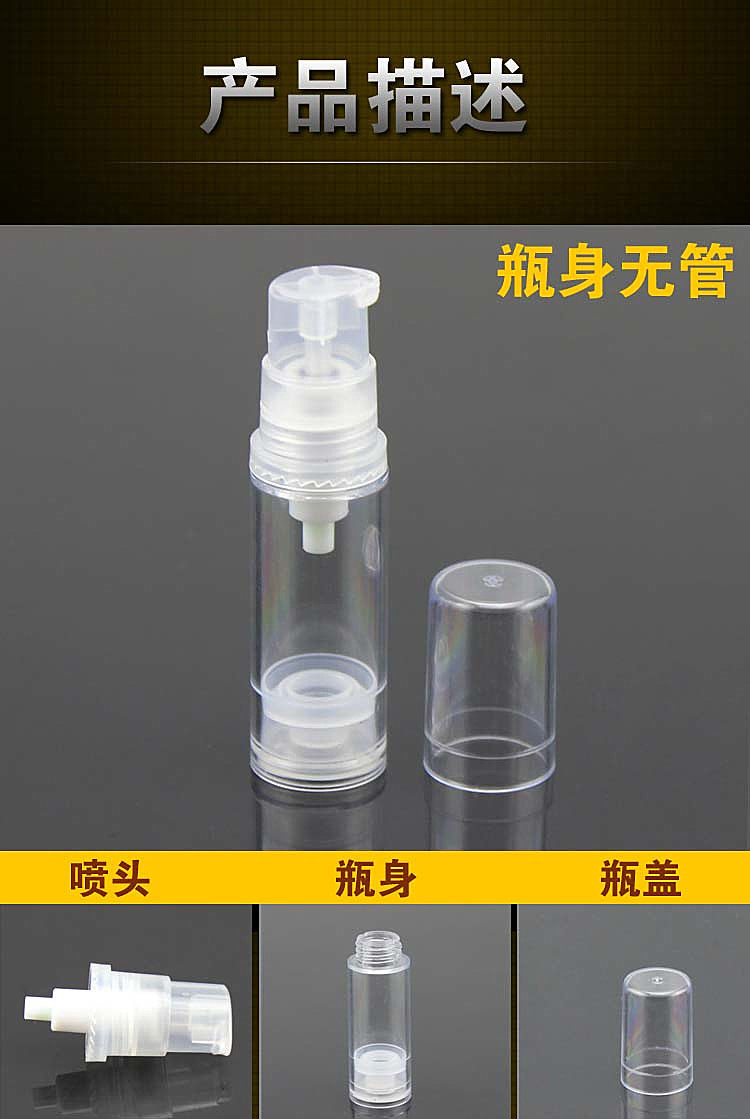 | 15ml\30ml\50ml高端乳液真空瓶 C型乳液按压瓶 全透明白色AS瓶 | | RMB:2.30 |