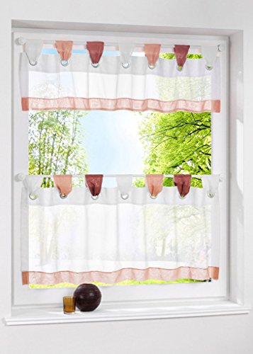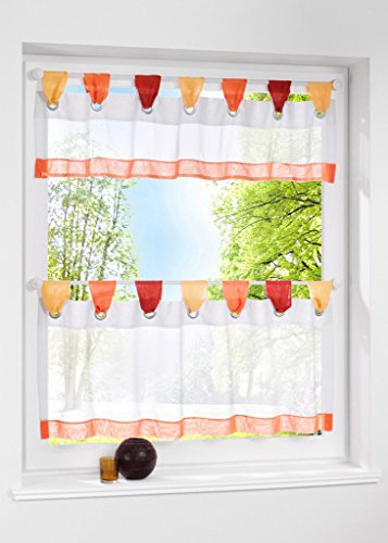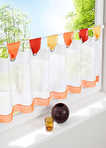 Uphome Semi Curtain with obmre tabs top - features white and pink/green/blue/orange/coffee stitching color sheer tier curtain will add a touch of lovely and cute to your room.